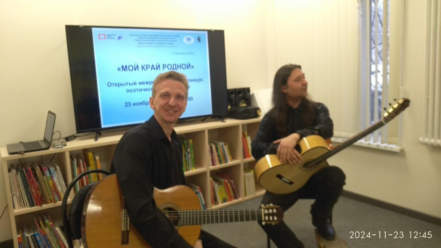 Музыкальным поздравлением участникам очного тура дуэт профессиональных гитаристов "АльМакс".